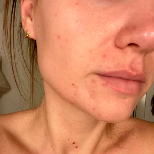 “[...] my skin tone dramatically improved. My blemishes started to fade after a week and are now gone after a few weeks and the dry patches have cleared up 80-90%. Overall I’m stunned with how good this product is. [...]”